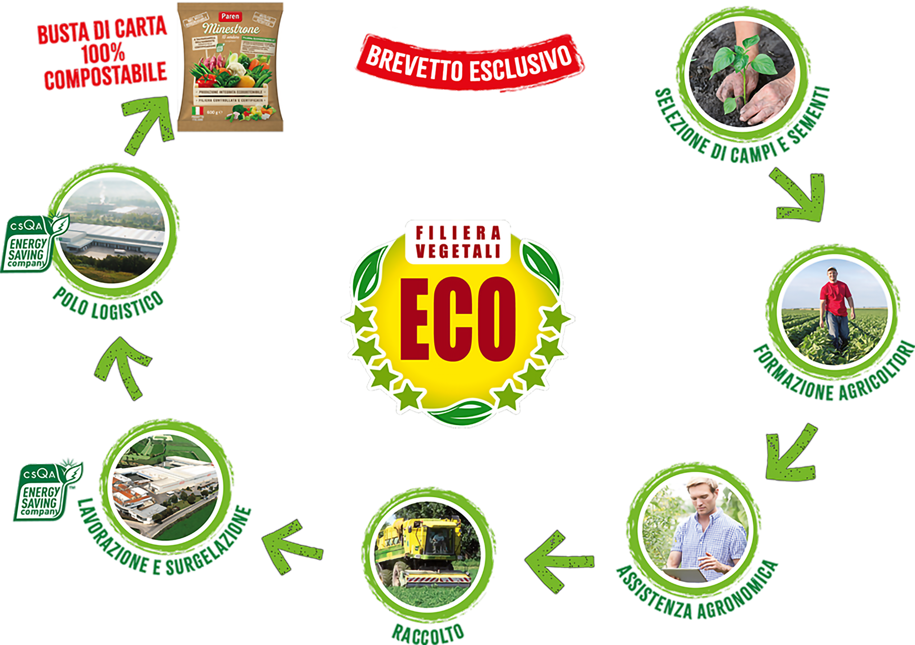 Industrie Rolli Alimentari is the only company in the food business worldwide to have obtained the exclusive patent of ECO-SUSTAINABILITY & PESTICIDE FREE production of frozen vegetables, thanks to: